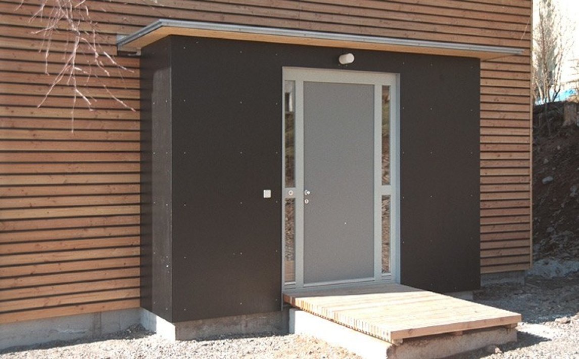 Kleines, sparsames Wohnhaus in vorfabrizierter Holzrahmenbauweise.