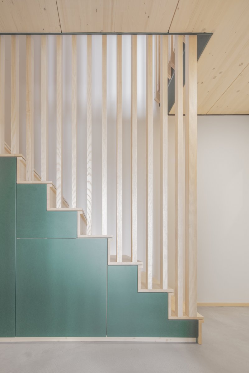 In seinem Erscheinungsbild sowie in seiner Konstruktion ist der Neubau durch den Werkstoff Holz geprägt. Lediglich Teilbereiche (an das Erdreich angrenzend) werden in Stahlbeton ausgeführt.
